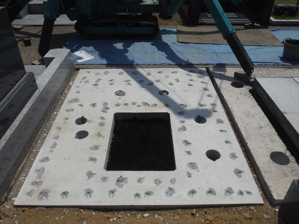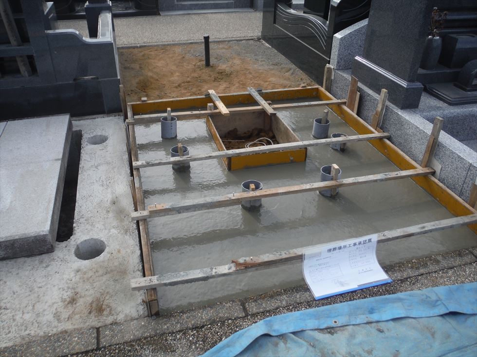 数日間置き、コンクリートが乾けば、お墓の基礎工事は完了ですと言いたいところですが当社ではこだわりのもう1項目あります。