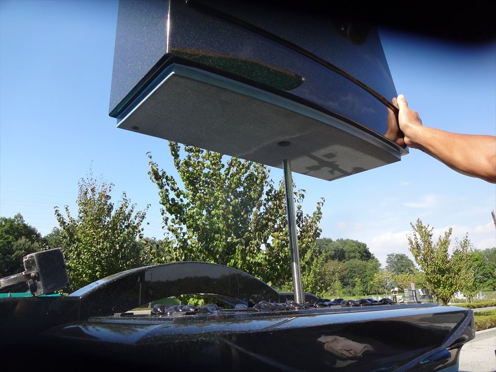 まず最初に、お墓を建てる現場に到着したならば、場所の確認をし、シートを広げ、通路等を極力汚さないような処置を行います。